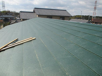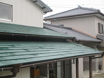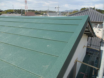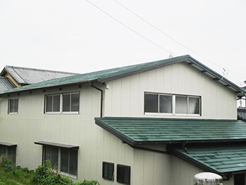 今回使用した商材は、かわらMFシルキー、色はグリーンで、遮熱性、塗膜性能(塗替え等のメンテナンスコストの低減)、その他等、優れた商品です。