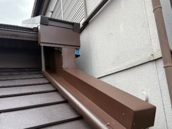 細部まで丁寧に板金が施工され、雨仕舞い性を高めながら外観を引き締めています。影が美しく入り、建物の表情がより洗練された印象に仕上がっています。
